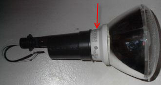 Notice the difference in width near the base of the floodlights just above the threaded portion.